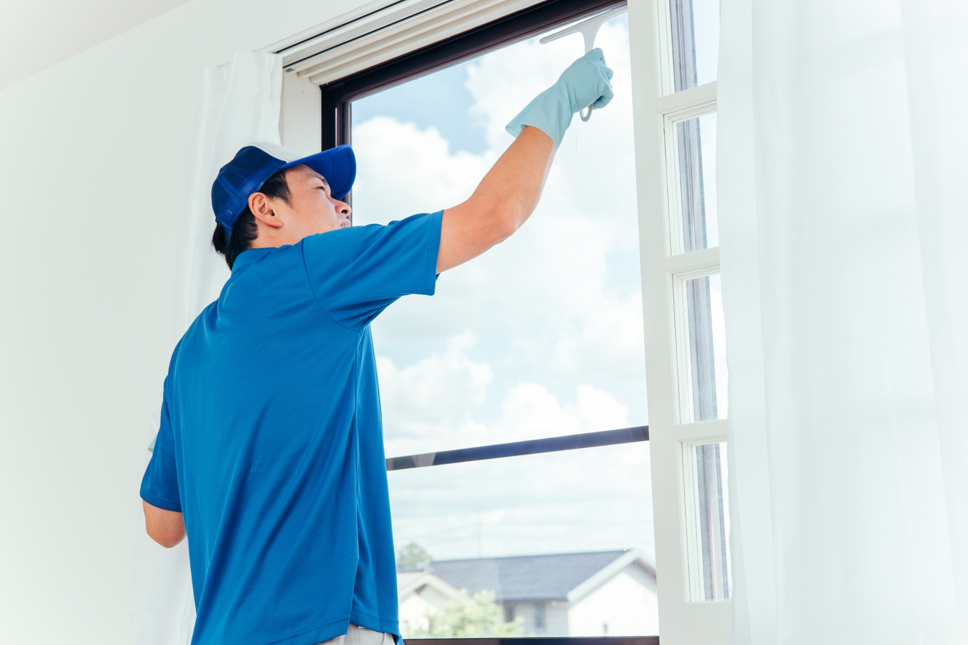 建物の窓ガラスやガラス面を丁寧に清掃し、室内に明るさと開放感をもたらします。